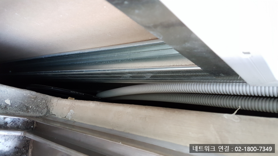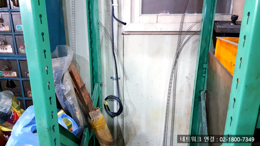 기계 설비가 밀집된 공간에도 유선 네트워크가 필요하였기 때문에, 복잡한 구조물을 피해서 벽면을 따라 선을 내렸고, 선반 뒤에 숨겨지는 부분은 반드시 보호튜브를 적용하여 안전을 최우선으로 고려하였습니다.